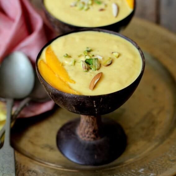 Creamy shrikhand blended with ripe mango pulp for a fruity twist.
