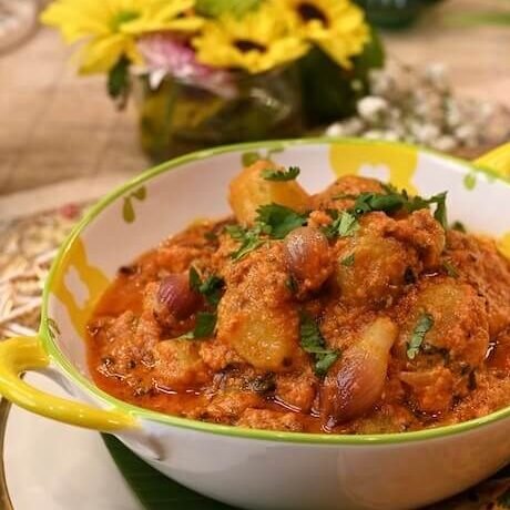 A simple onion-based curry, mildly spiced and homely in flavor.