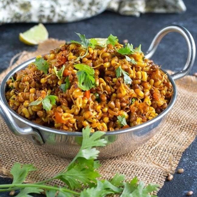 Shev paired with math (field beans) in a thick, spicy gravy — earthy and hearty.